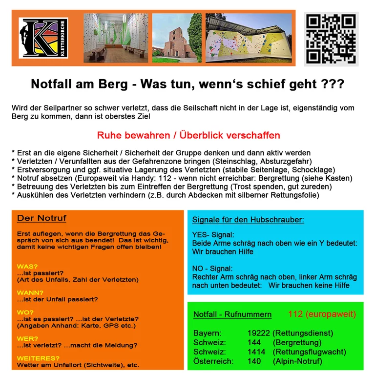 Doch bei aller Freude sollten wir nicht vergessen, dass Notfälle passieren können. Wir beobachten, dass die Nachrichten über Unfälle am Berg / am Fels gerade wieder zunehmen.